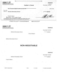 | Dell View Elementary School 2021 | Elementary School | 16-Nov-2021 | San Antonio, TX | USD 1500 | Basani Family |
