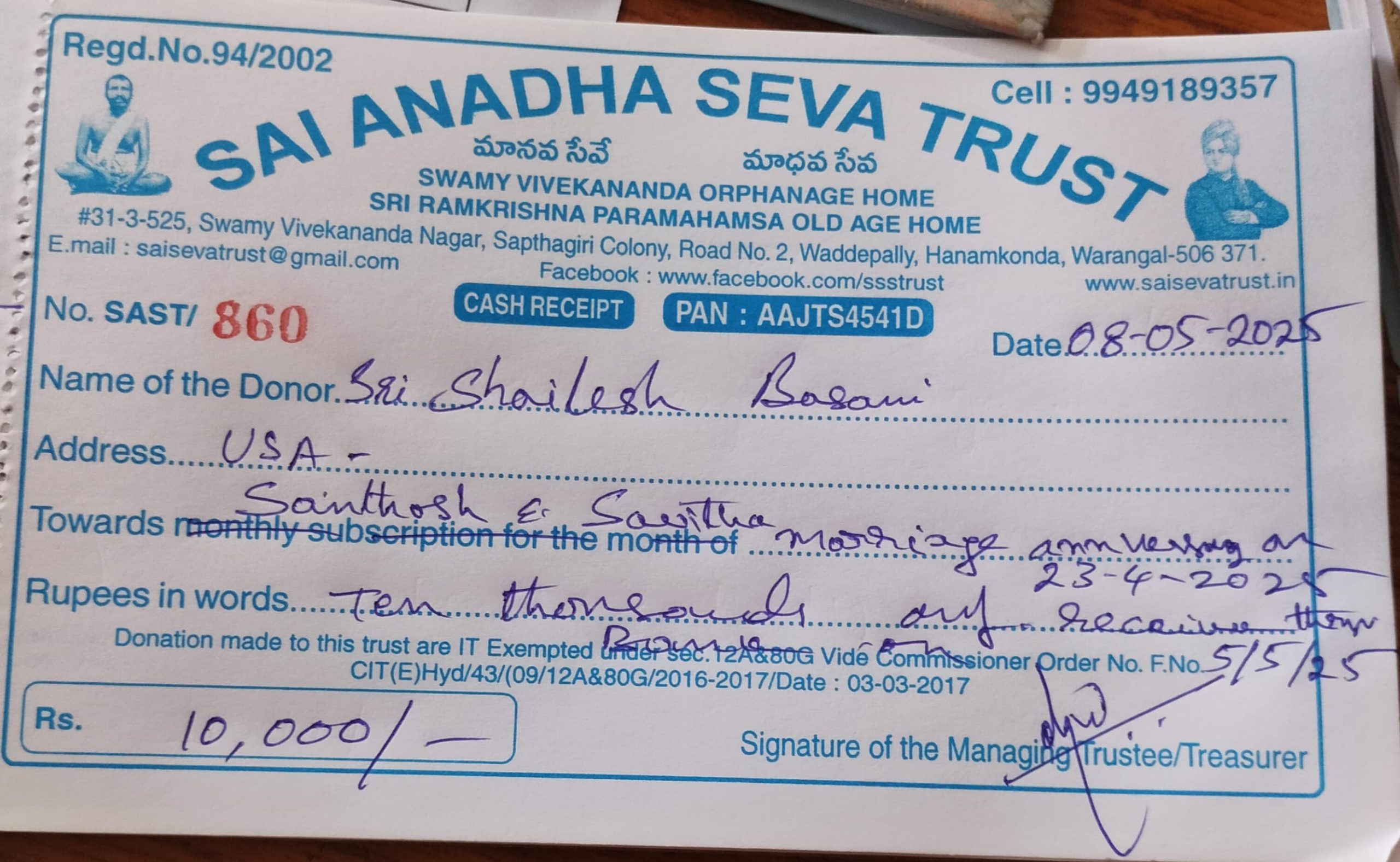 | Sai Anadha Seva Trust 2024 | Access Road | 25-Nov-2024 | Warangal, TG | INR 1,50,000 | Vinay Bhushan, Srinivas Konda |